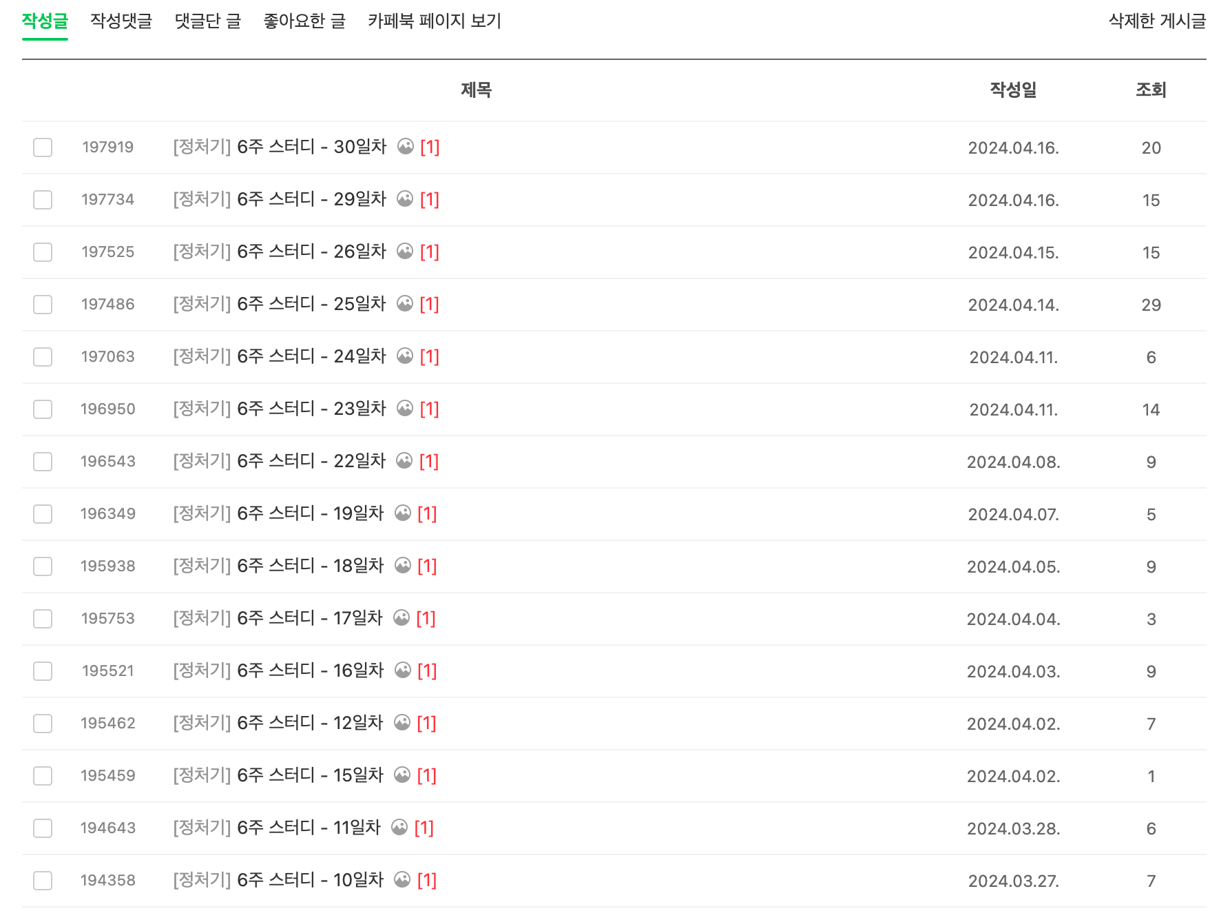 수제비 카페에서 8주, 6주, 4주 스터디를 진행한다. 나처럼 스스로 공부를 못하는 사람에게 추천한다.
