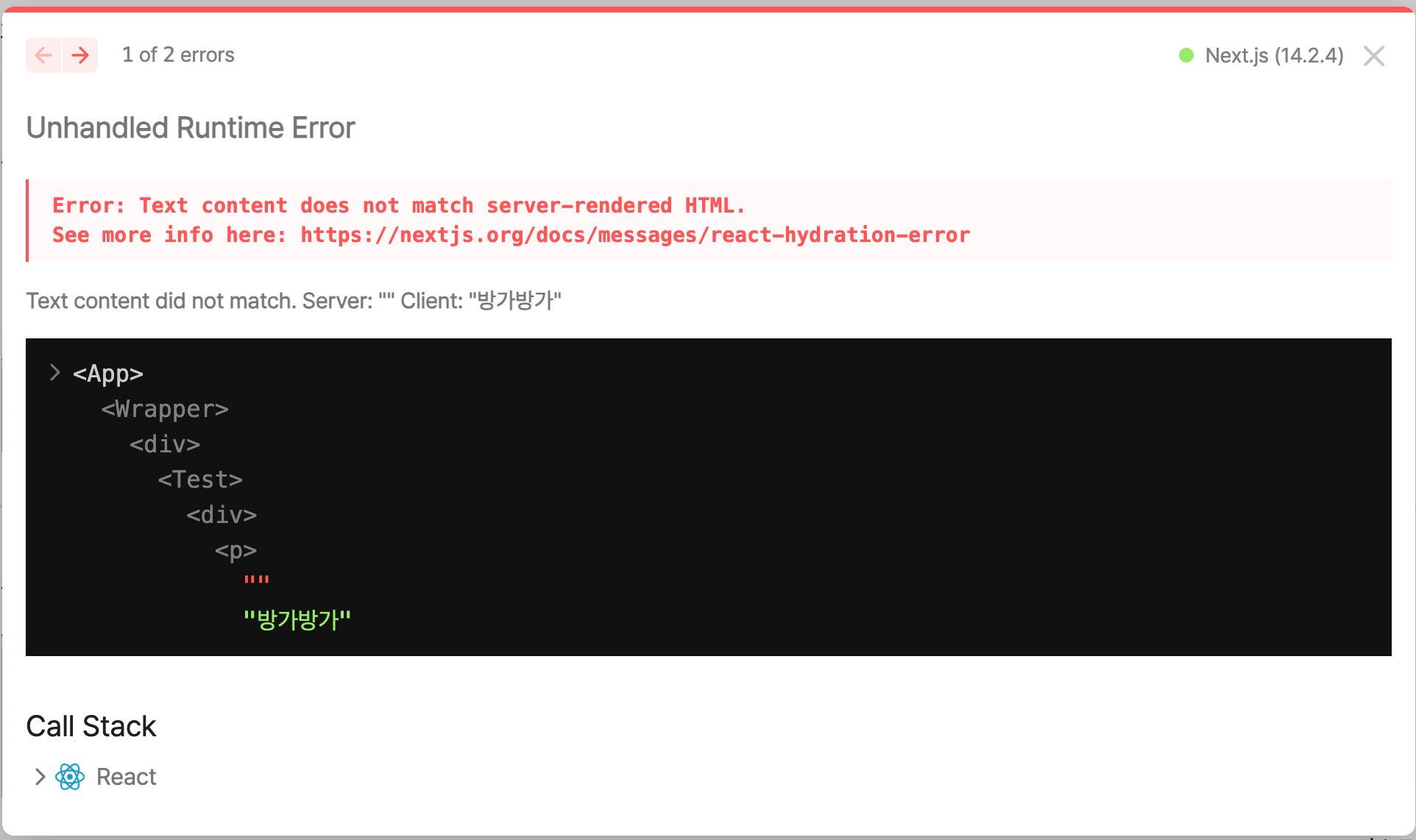 구글링을 통해 Hydration Error 를 해결하는 방법을 찾았다.