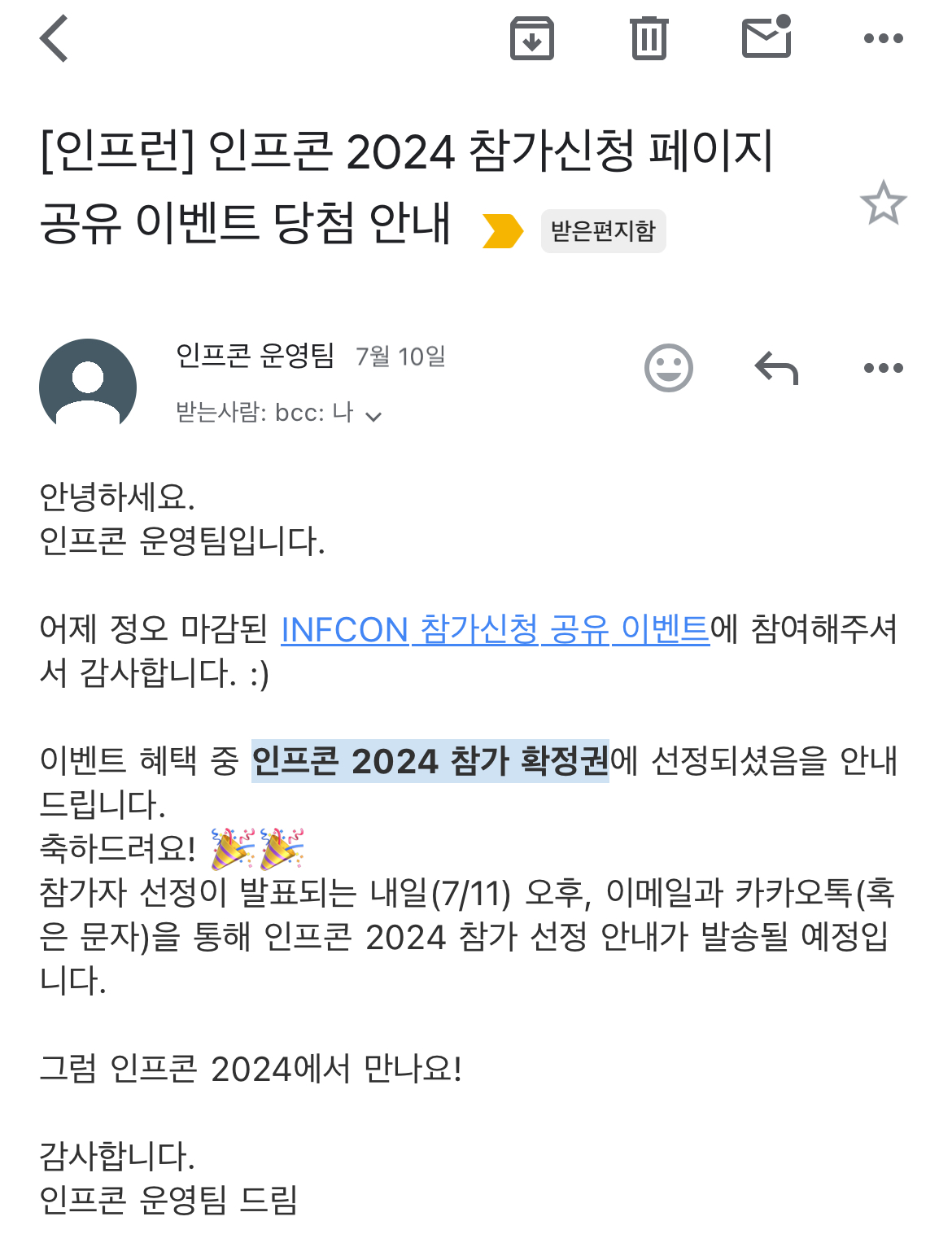 지금은 INFCON 2024 참가 신청 진행 중 🏃♂️🏃올해 인프콘 참가 신청을 완료하신 분들은 주목해 주세요! 매년 수천 명의 참가 신청으로높은 참여 경쟁률을 보유한 인프콘.늘 뜨거운 관심을 보