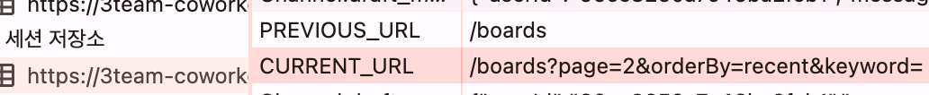 페이지가 전환될 때마다, 현재와 이전 url 값이 잘 저장되는 것을 확인할 수 있다.