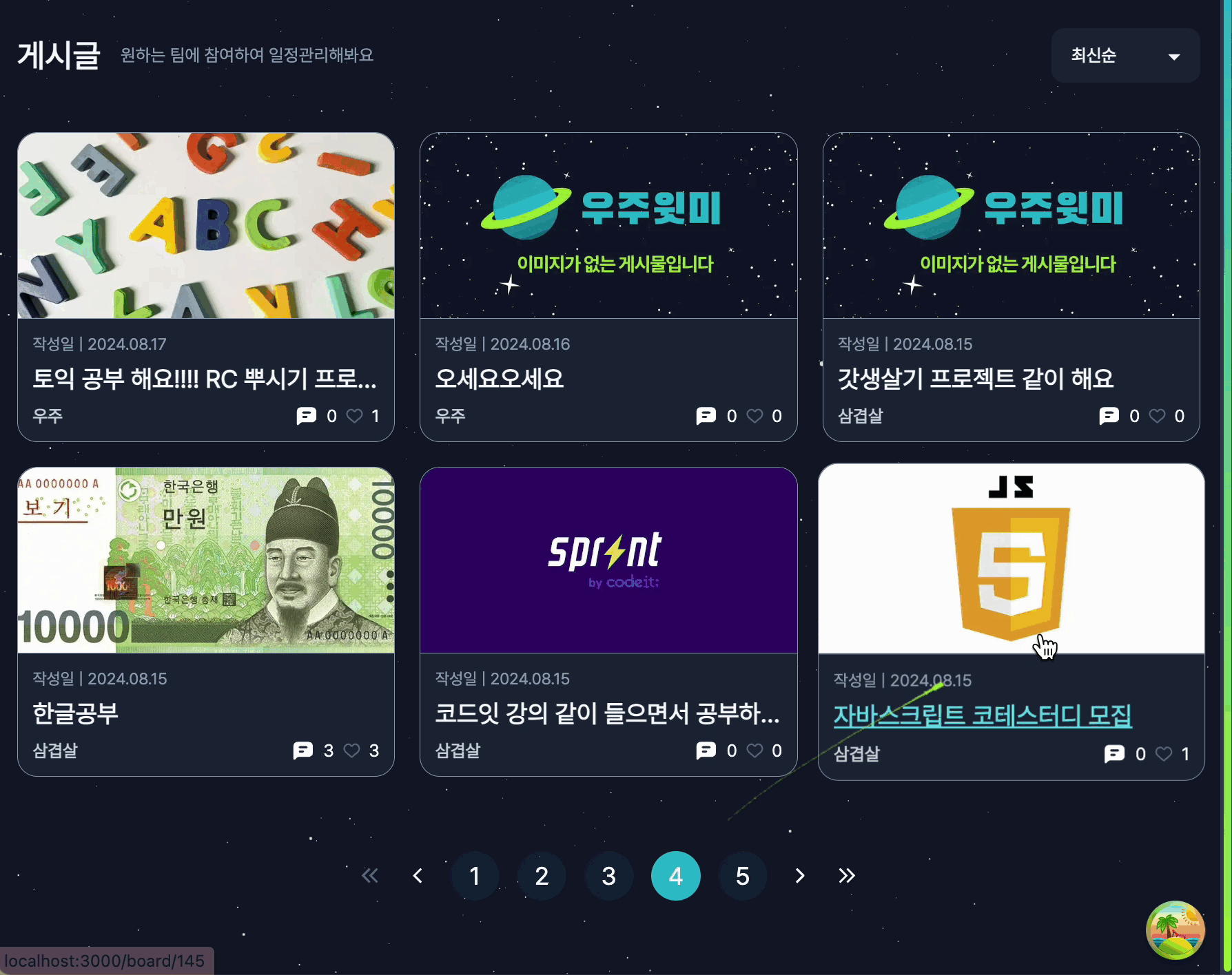 이번 프로젝트에서 자유게시판(모집게시판)을 구현하게 되었다.