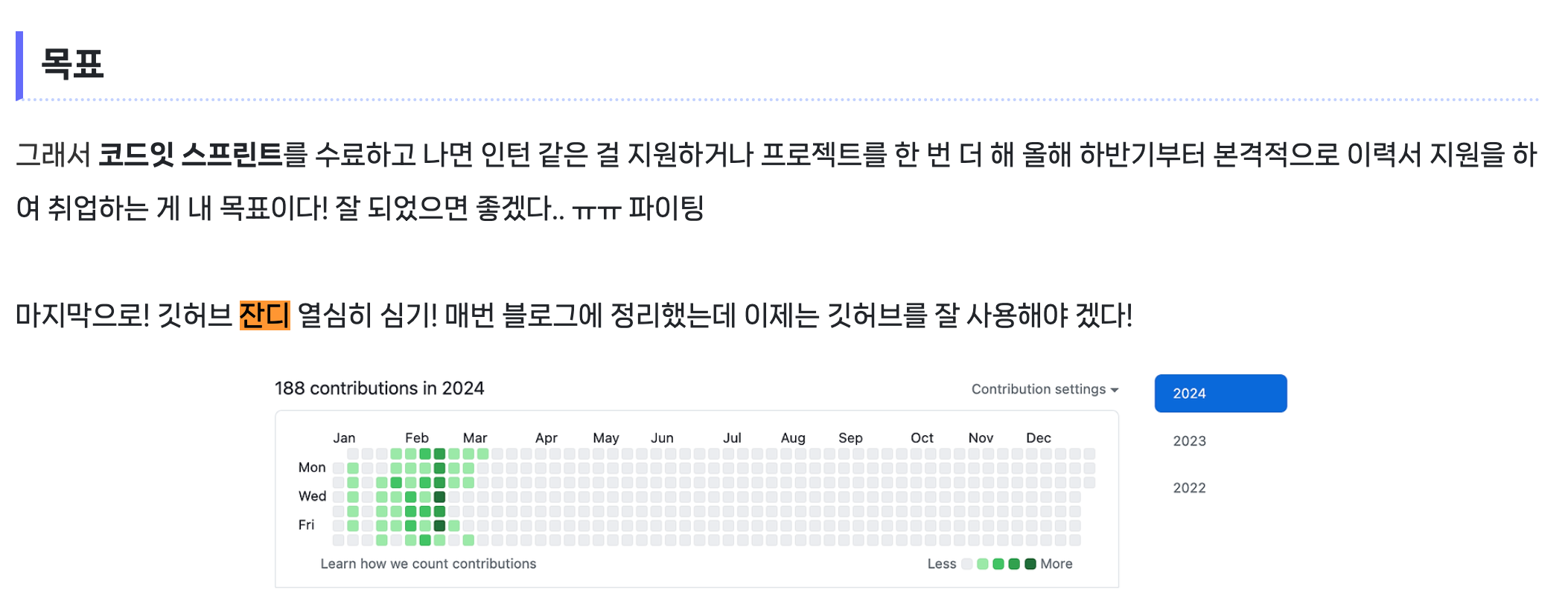 그동안 깃허브에 잔디를 매일 심은 사람이 멋져 보였다. 🌟