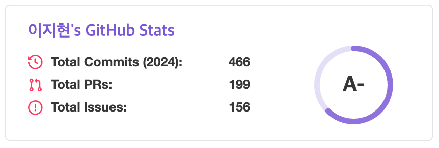 그리고 아쉽게도 3월 기록은 없지만 GitHub Stats 도 PR 과 Issues 수가 4개월 사이에 크게 늘어났다.