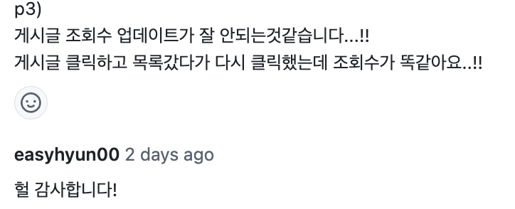그러면 게시물 상세 데이터와 동시에 조회수가 나타났다가, 현재 조회수에 맞게 알맞게 업데이트된다.