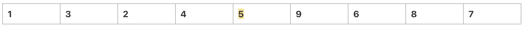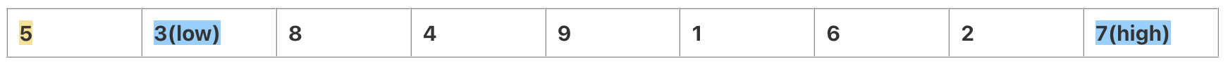 5를 pivot 으로 설정하고, 양 끝을 low 와 high 로 설정한다.