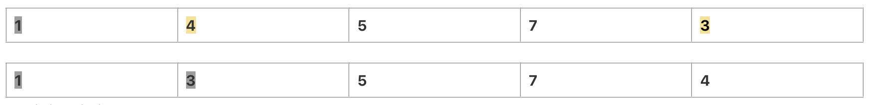 이렇게 선택 정렬은 선택한 요소끼리 교환하여,