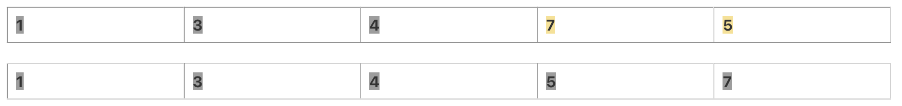 5는 7보다 작기 때문에, 7 앞으로 5를 삽입한다.
