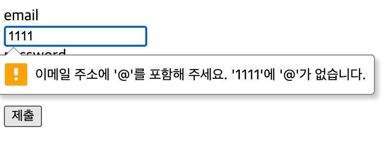 제출할 경우, email 형식이 맞지 않다고 경고창이 뜨게 된다.