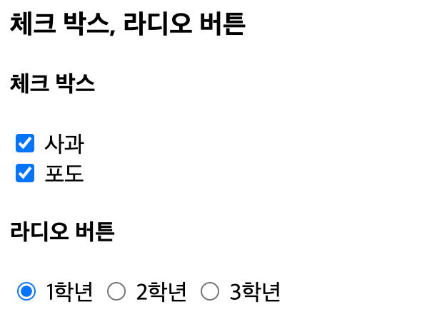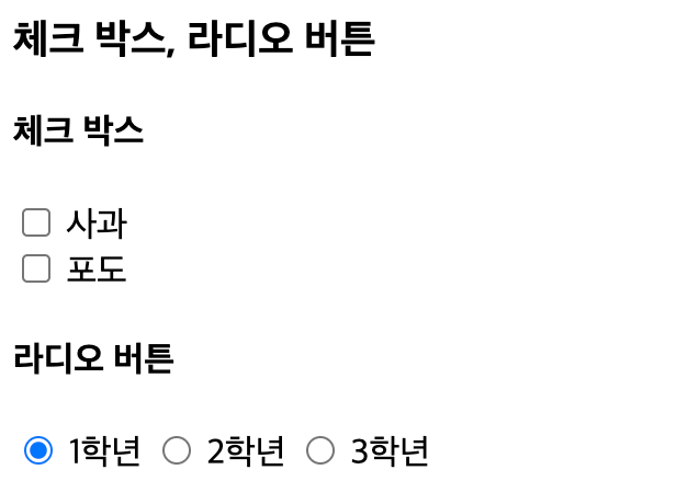 | checkbox | 체크 박스(여러 개 선택 가능) |