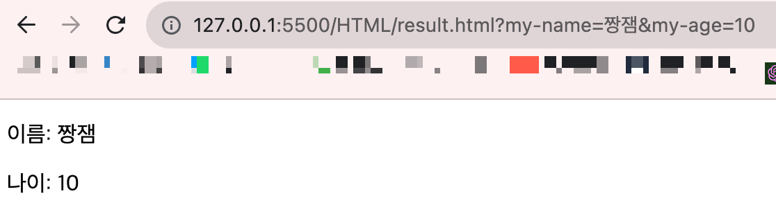 그러면 http://127.0.0.1:5500/HTML/result.html?my-name=짱잼&my-age=10