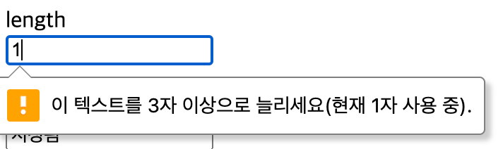 minlength와 maxlength 를 사용하여 입력할 내용의 최소, 최대 길이를 설정할 수 있다.