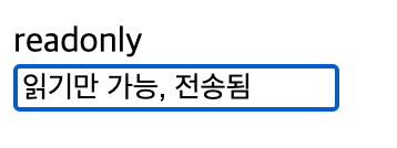 - readonly: 읽기만 가능, 서버로 value 값이 전송