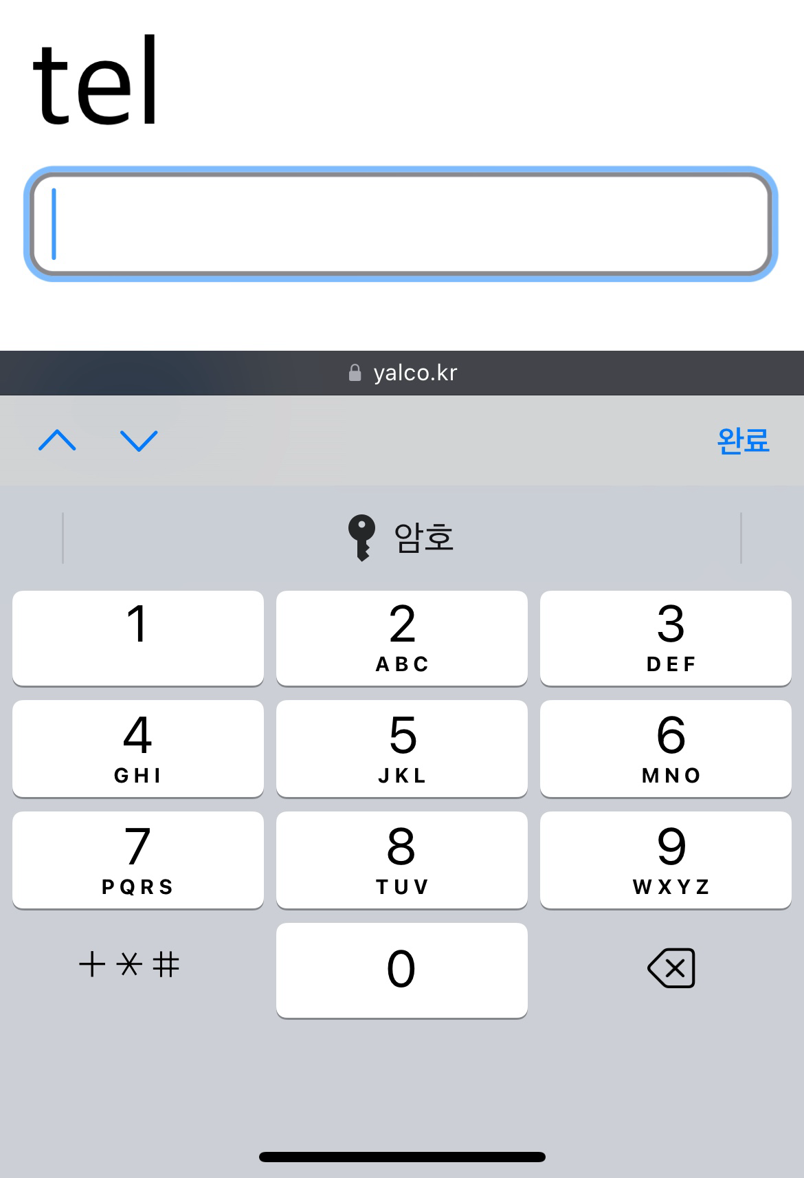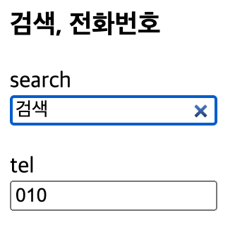 search 는 검색 창이 되어 오른쪽에 취소 버튼이 생기고, tel 은 전화번호를 입력하는 입력 창이 된다.