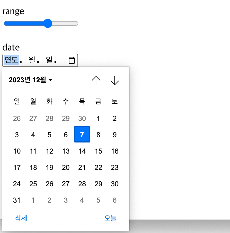 range 는 스크롤 바를 통해 값을 입력하는 것이다.