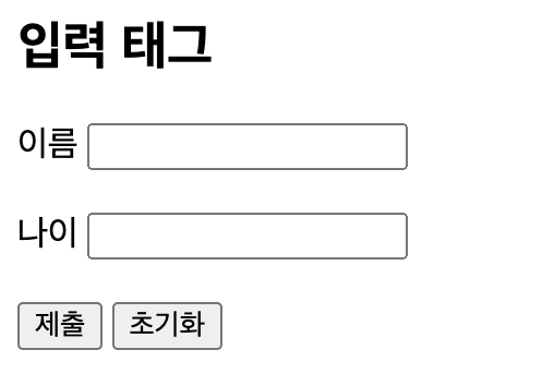 | <button> | 버튼 | type - submit(제출), rest(초기화), button(기본) |