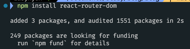 나는 npm 을 사용하므로 npm 을 사용하여 react-router-dom 을 설치하였다.