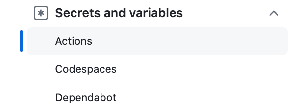 Secrets and Varibles 에 있는 Actions 에 들어가서 secret 변수를 등록한다.