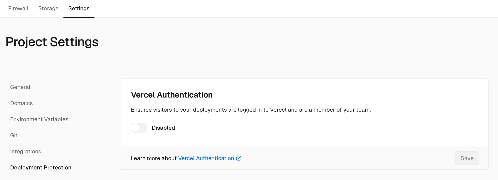 이때 vercel Settings 에서 Vercel Authentication 를 Disabled 하면 다른 사람들 모두가 볼 수 있게 된다.