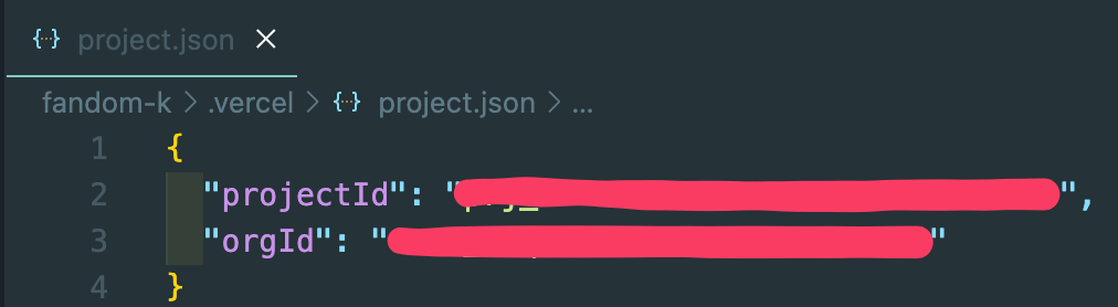 끝나고 나면 .vercel 이라는 폴더가 생기고 그 안에 project.json 파일에 가면 projectId 와 orgId 가 생긴다.