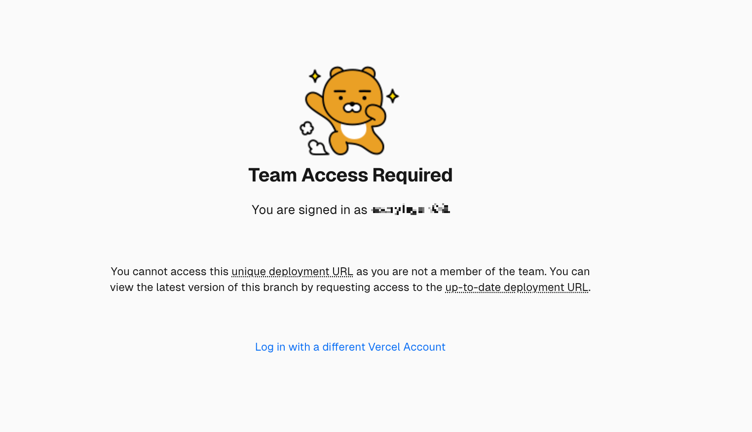 미리보기 주소에 다른 사람이 들어오면 아래처럼 Team Access Required 라는 문구가 뜨게 되는데