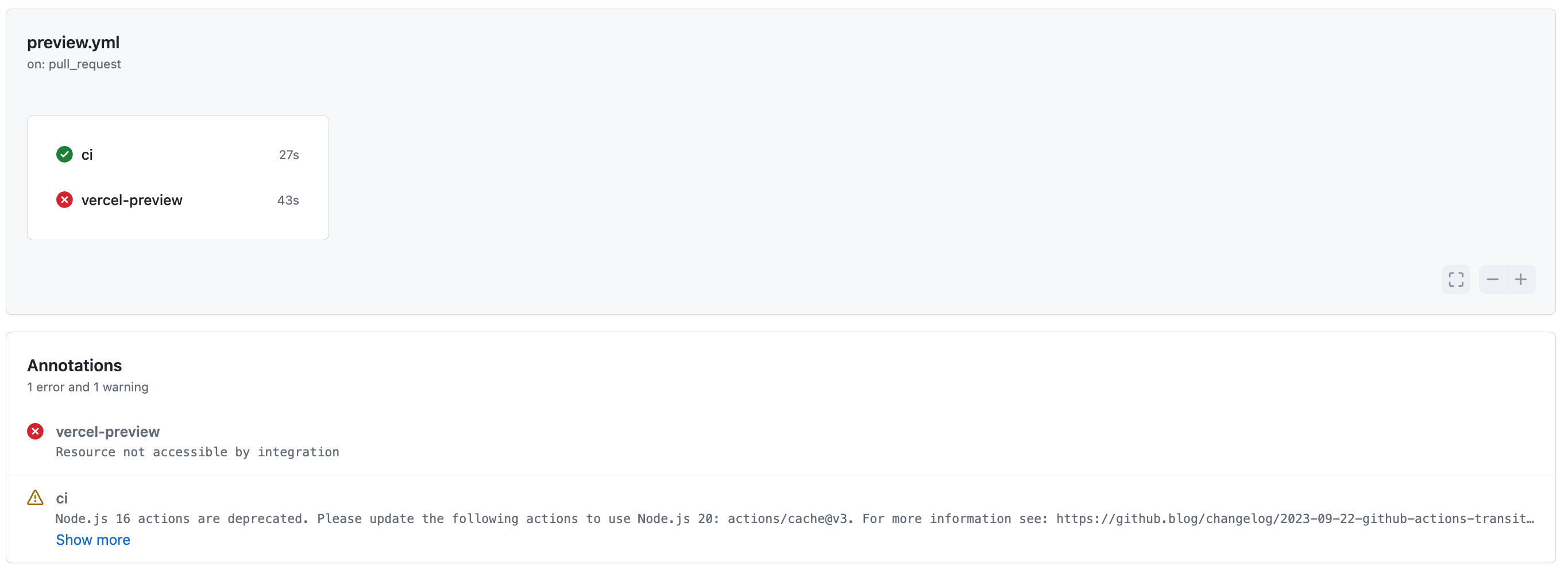 그러나 Organization 레포지토리가 아닌 경우 vercel 봇을 사용하여 간단하게 미리보기를 배포할 수 있지만