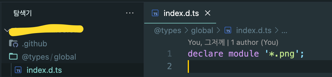이를 해결하기 위해 최상단 폴더에 @types/global/index.d.ts 를 만들어 .png 확장자를 추가한다.